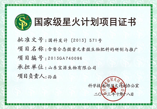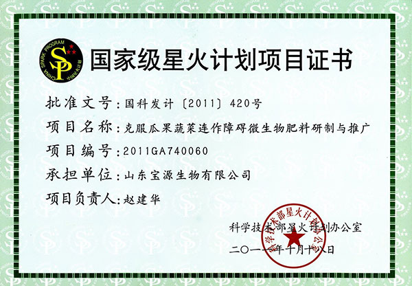 國家星火項(xiàng)目證書2