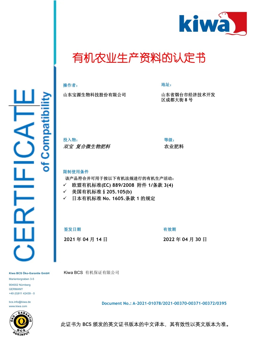 歐盟有機認證!